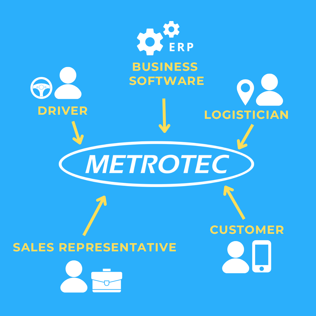 Metrotec’s task management solution ensures a smooth flow of information among all parties involved. Drivers, logistics managers, sales representatives, customers, and the company’s business software all operate as logical parts of one unified system.