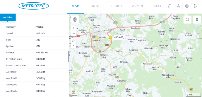 Förutom var maskiner befinner sig och om de är upptagna ser man även information om målpunkten och tidsåtgången för arbetet. Rutten till målpunkten kan spåras i realtid. Precisa instruktioner sparar både tid och bränsle. Arbetsordern som visualiseras på kartan tillsammans med navigeringsenhetens trafikinstruktioner gör förarens arbete både enkelt och stressfritt.