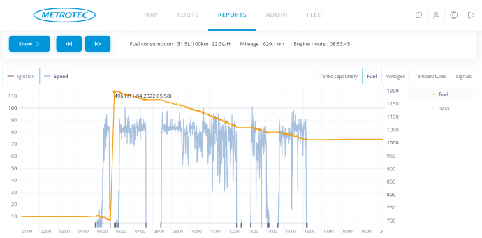 Ofta tar grafer eller diagram överskådligheten av uppgifterna till en helt ny nivå. Man får genast klart för sig vad som pågår i bränsletanken. Dynamisk skala visar även några liters förlust tydligt.