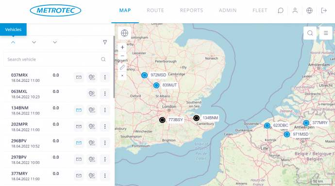 Kontinuerligt uppdaterad information i realtid om maskinernas läge och om de är upptagna eller inte. En klar översikt över körande och stående, upptagna och lediga maskiner.