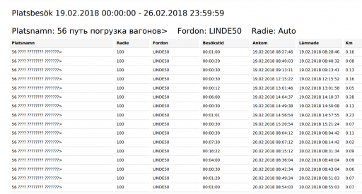En rapport över en valfri period visar exakt hur många besök en viss lastbil gjorde, hur länge lastningen varade och när lastning utfördes.